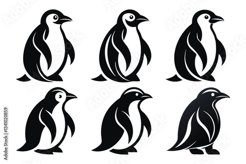 © farzana, Naklejka premium A set of penguin logos vector silhouette, highly detailed