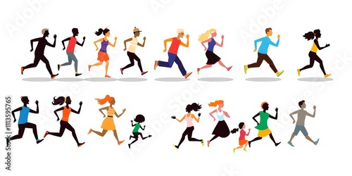 Naklejka premium A set of pictograms depicting diverse human figures in different poses, colorful, sports