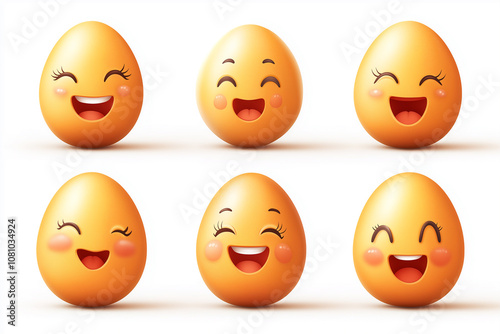 Fototapeta premium A set of smiling eggs with different expressions