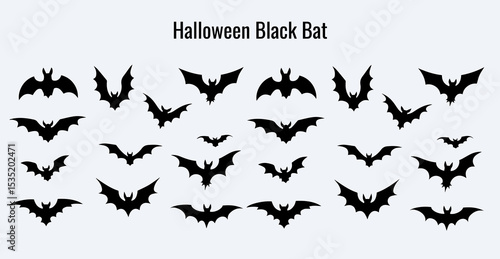 © Pixel Verses, Naklejka premium A set of spooky bat silhouette with different wing positions isolated on a white background ideal for Halloween.