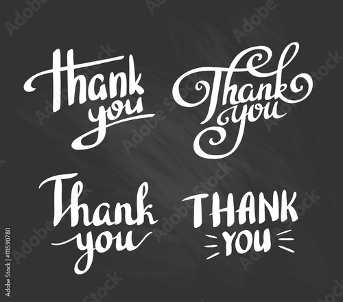 © Utro na more, Obraz premium A set of style 'Thank You' design elements.Vector lettering on the chalckboard.
