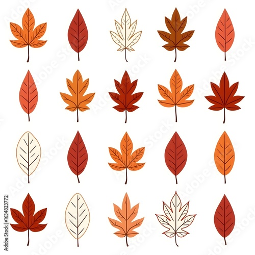 Fototapeta premium A set of stylized autumn leaves of various shapes and shades. It's a wonderful collection that creates a feeling of autumn mood.