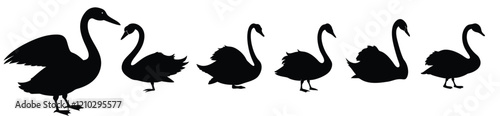 © Mamun, Obraz premium A set of swan silhouette natural bird illustration