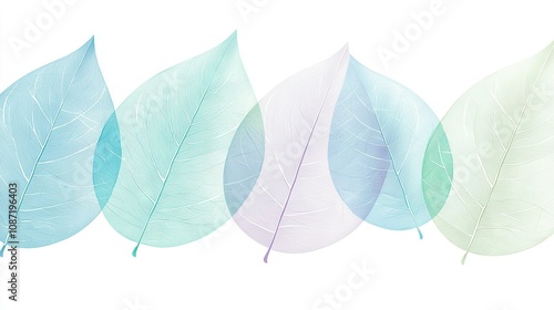 © Olga, Fototapeta premium A set of three diverse-colored feathers adorn a white backdrop, alongside a blue and green plume on the left