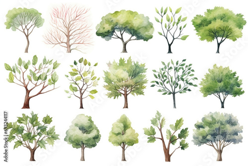 © pritsadee, Fototapeta premium A set of tree painting with watercolor.
