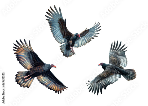 Obraz premium A set of Turkey Vultures flying on a transparent background
