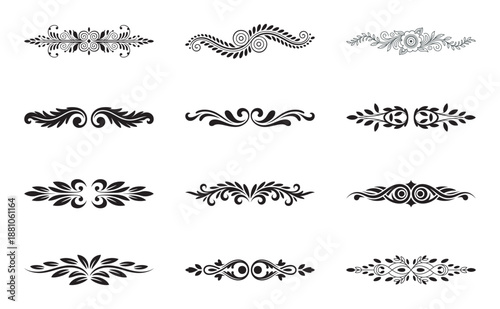 Obraz premium A set of vintage ornamental dividers featuring floral and scroll patterns for design elements
