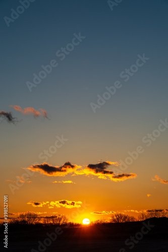 Obraz premium A setting sun on the horizon.