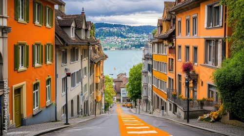© Pannee, Obraz premium A shared lane painted onto a narrow, pedestrian-friendly street.