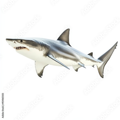 Naklejka premium A shark is swimming in the ocean with its mouth open