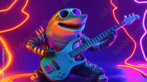 Obraz premium A shark rocker plays electric bass guitar.