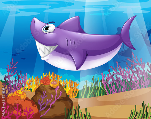 Obraz premium A shark smiling at the bottom of the sea