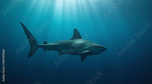 Fototapeta premium a shark swimming in the depths of the ocean