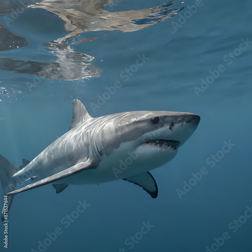 © MAJIB, Naklejka premium a shark swimming in the water with its mouth open