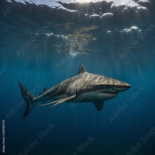 Naklejka premium A shark swimming just below the surface.