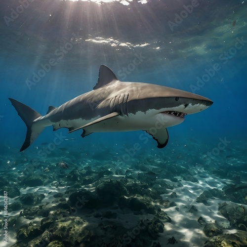 © Malinda, Fototapeta premium A shark that swims in the shallow sea
