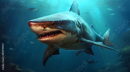 © Oranee , Naklejka premium A shark with a tiny fin cap