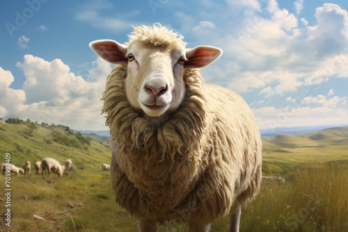 Obraz premium A sheep on a green field
