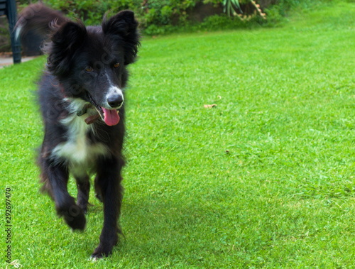Fototapeta premium A sheepdog running in a garden