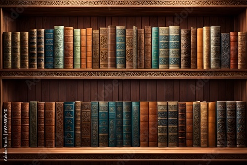 © Sutarto Stock, Fototapeta premium A shelf full of books with a variety of colors and sizes