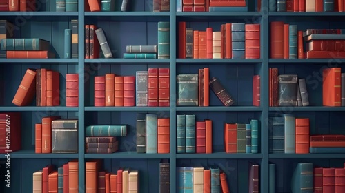 Fototapeta premium A shelf in a library with books arranged in a certain order symbolizing the...
