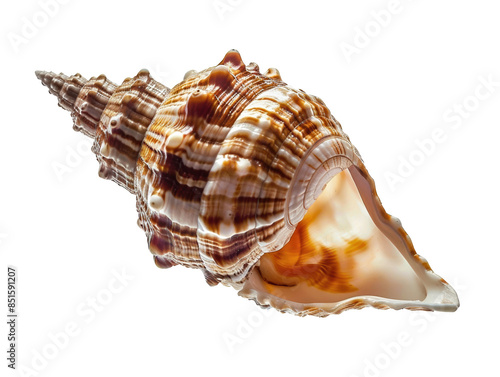 © Wonderful Studio, Obraz premium A shell with a brown and white pattern is shown on a white background