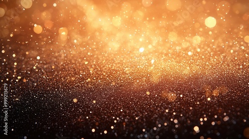 © Yulia, Obraz premium A shimmering bronze backdrop radiates warmth and magic, capturing the essence of sunset brilliance with floating particles of light