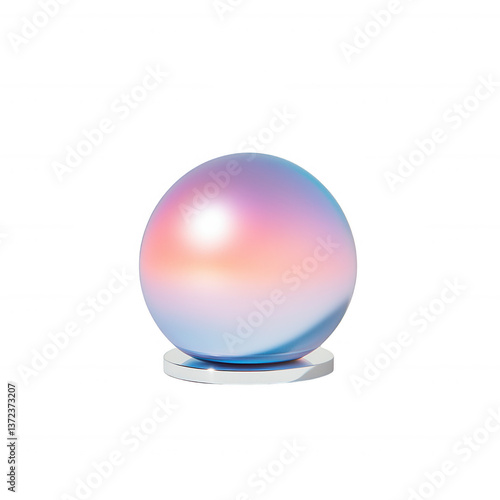 Fototapeta premium A shimmering crystal ball with a gradient of pastel colors, resting on a sleek base, perfect for coining mystical themes and enhancing creativity.