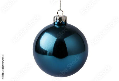 Obraz premium a shiny blue Christmas bauble with a silver top, hanging against a transparent background.