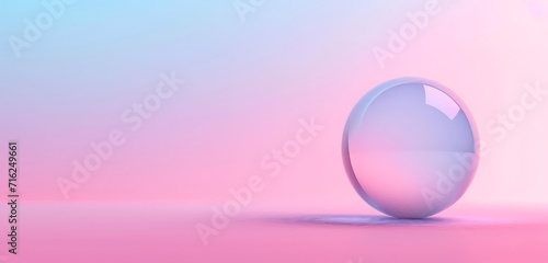 Obraz premium A shiny glass sphere on a gradient pastel background.