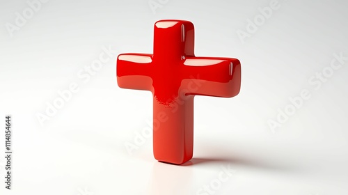 Obraz premium A Shiny Red Cross Stands Alone On White