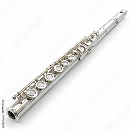 © Noorpur, Fototapeta premium A shiny silver flute with elegant finger keys, producing smooth,