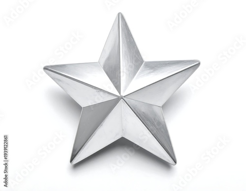 © Bejo, Obraz premium A shiny silver star with sharp points and a subtle shadow
