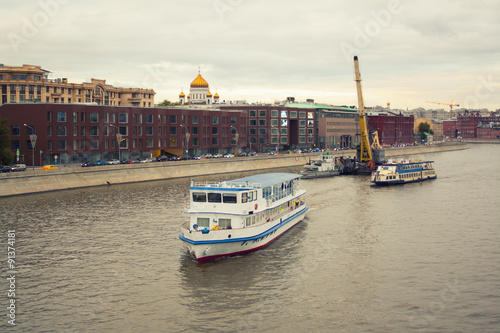 © dinv, Fototapeta premium A Ship At Moscow River Near The Road