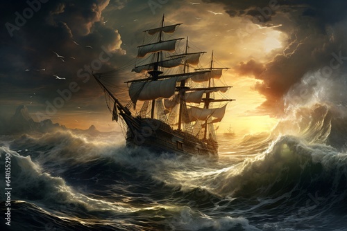 Obraz premium A ship caught up in a storm