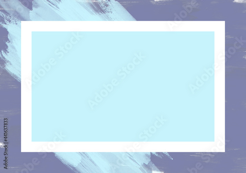 © Anton, Naklejka premium A Ship Cove frame with a brush painted background. Template for packaging for the fashion industry in cold pastel colors. Invitation design with blue paint lines.