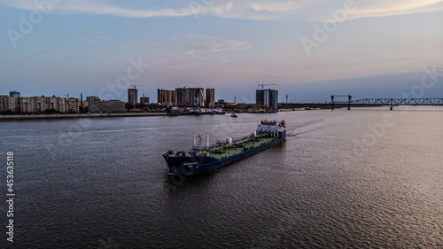 © Дмитрий Солодянкин, Naklejka premium a ship on the volga in astrakhan