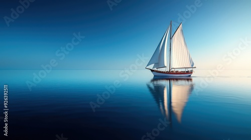 © CHA, Fototapeta premium A ship sailing through calm waters with an insurance logo on the sail symbolizing marine insurance