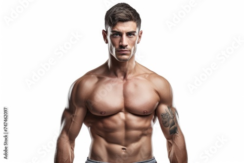 Fototapeta premium A shirtless man with a chest tattoo, suitable for lifestyle and fashion...