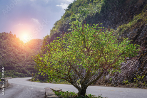 © Mo, Obraz premium A short tree flourish in the morning sunlight