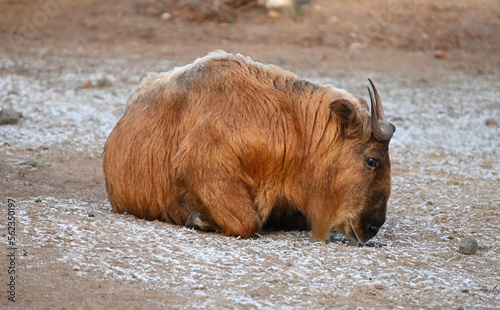 © superpapero, Fototapeta premium A sichuan takin goat on the snow in Himalaya