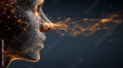 © florynstudio3, Fototapeta premium A side profile of a dark face with glowing interconnected lines emanating from the nose