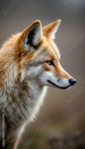 © Firman Dasmir, Fototapeta premium A side profile portrait of a coyote with an out of focus brown background