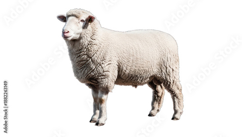 © irawan710, Obraz premium A side view of a white sheep standing on a dark surface, isolated against a transparent backdrop
