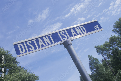 © spiritofamerica, Fototapeta premium A sign that reads ÒDistant Island DrÓ