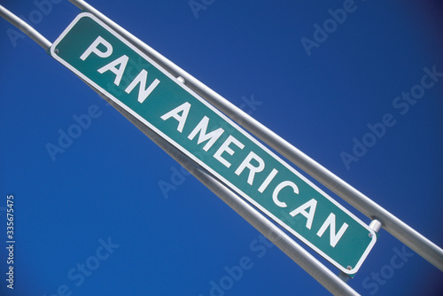 © spiritofamerica, Fototapeta premium A sign that reads ÒPan AmericanÓ