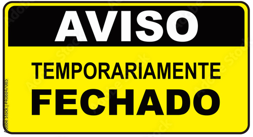 © hunterpic2013, Fototapeta premium A sign that says in Portuguese Language : NOTICE TEMPORARILY CLOSED