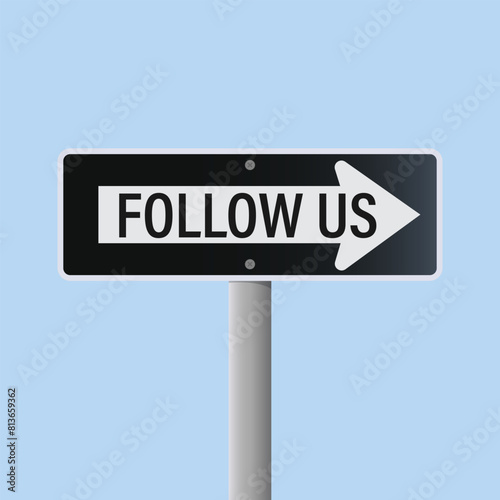 Obraz premium A sign with an arrow and the text "follow us" on a light blue background