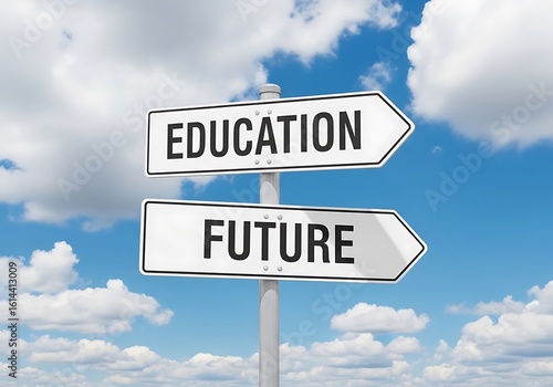 Fototapeta premium A signpost with two arrows pointing in different directions, labeled education and future