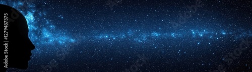 Fototapeta premium A silhouette against a cosmic starry background, symbolizing thought.
